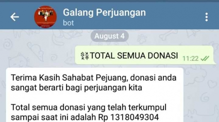 Dalam laporan terkini 4 Agustus tercatat ada Rp 1,3 miliar dana yang masuk dari penggalangan itu. Meski kita tak tahu dari mana asalnya, mari berpikiran positif saja sumbangan dana itu benar-benar berasal dari masyarakat.